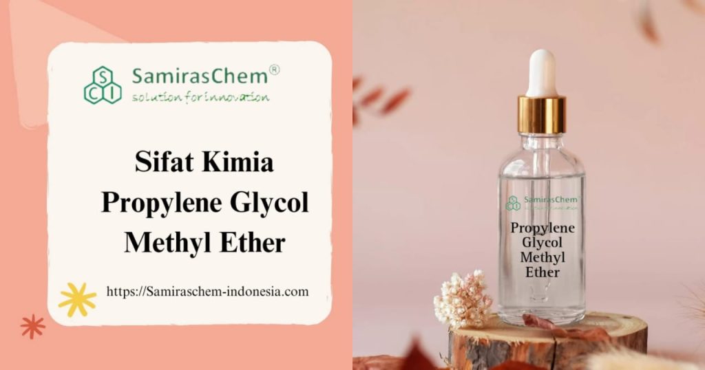 Sifat Kimia Propylene Glycol Methyl Ether adalah senyawa organik yang tergolong dalam kelompok eter glikol. Senyawa ini memiliki rumus kimia C4H10O2 dan struktur molekul CH3OCH2CH(CH3)OH. Secara fisik, propylene glikol methyl eter adalah cairan yang jernih dan tidak berwarna dengan aroma ringan yang menyenangkan. Senyawa ini memiliki titik didih sekitar 120-125 °C serta sangat larut pada air serta pelarut organik lainnya.